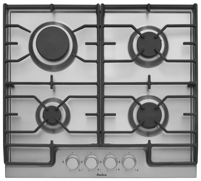 Варочная панель Hansa BHGI63111035 газовая варочная панель поверхность из нержавеющей стали 4 газовые конфорки двухконтурная конфорка переключатели поворотные электроподжиг независимая установка габариты (ШхГ) 60x53 см