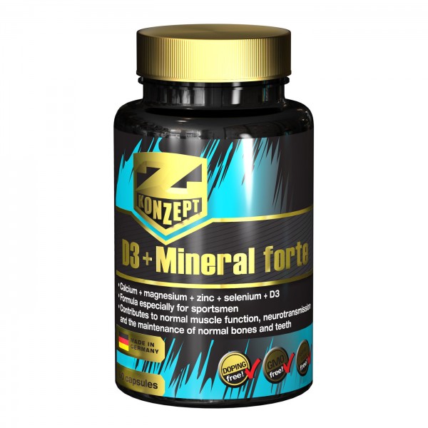 Кальций + Магний + Цинк + Селен + D3 специально для спортсменов, которые представляет собой сочетание, что способствует нормальной функции мышц, нормальной функции нейромедиаторов и поддержания нормальных костей и зубов. Наши высокие дозы 4-минеральный состав с витамином D3, у нас есть специально предназначен для спортсменов. С суточной дозе 3 капсулы вы достигнете поставку 300% NRV (пищевые справочные величины) магния, селена, цинка и витамина D3 и 150% NRV кальция. Среди других важных эффектов способствует кальция к нормальной функции мышц и поддержания нормальных костей и зубов в , Витамин D3 имеет функцию прогормона и играет важную роль для кальция в формировании крови и костного. Магний способствует - среди прочего - уменьшить усталость и усталость, мышечную нормальную функцию и нормальную синтез белка в. Селен способствует защите клеток от окислительного стресса и нормального функционирования иммунной системы. Цинк способствует нормальному синтеза белка и нормальной углеводного обмена, а также для получения нормального костного. Все эти аспекты имеют особенно важное значение для людей с активным образом жизни. Z концепция D3 + Минеральные Forte Состав: Карбонат кальция (53,1%), оксид магния (34,4%), желатин (капсула), цитрат (1,7%), антиадгезивы (магниевые соли жирных кислот, диоксид кремния), селенита натрия, красители (диоксид титана, тартразин), холекальциферол. Аллерген информация: Может содержать следы глютена, лактозы, сои и яиц белок, содержащийся предложил: Возьмите 1 до 3 капсул в день с достаточным количеством жидкости. Рекомендуемая суточная доза не должна быть превышена. Z KonzeptD3 + Минеральные Форте Пищевая ценность: За капсулы (1883 мг): Энергия кДж / ккал 3,7 / 0,9, белок 0,1 г, углеводы <0,1 г, (которых сахара 0,1 г) <, жир <0,1 г, (из которых насыщенные) <0,1 г, соль <0,1 г. На 100 г: Энергия кДж / ккал 195 / 46,5, белок 14,7 г, углеводы <0,1 г, (из которых сахара) <0,1 г, жиры 1,5 г, (из которых насыщенные) 1,5 г.