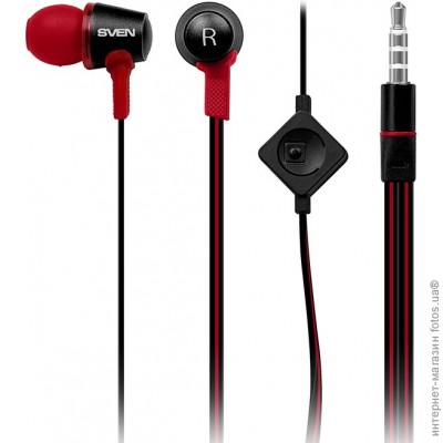 "Earphones SVEN SEB-190M Black-Red, 4pin * 3.5 mm jack, Microphone - http://www.sven.fi/ru/catalog/headsets/seb_190m.htm"