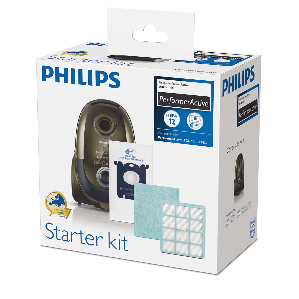 Набор аксессуаров для пылесосов серии Performer Active состоит из 6 мешков для сбора пыли (s-bag), 1 выходного фильтра EPA12, 1 трехслойного фильтра для защиты мотора. Совместим со следующими моделями: PerformerActive FC8520-FC8529; FC8650–FC8669