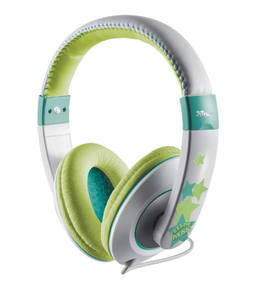 "Headphones Trust Sonin kids Grey/Green, 3pin 1*jack3.5mm - http://www.trust.com/ru/product/19558-sonin-kids-headphone-grey-green"