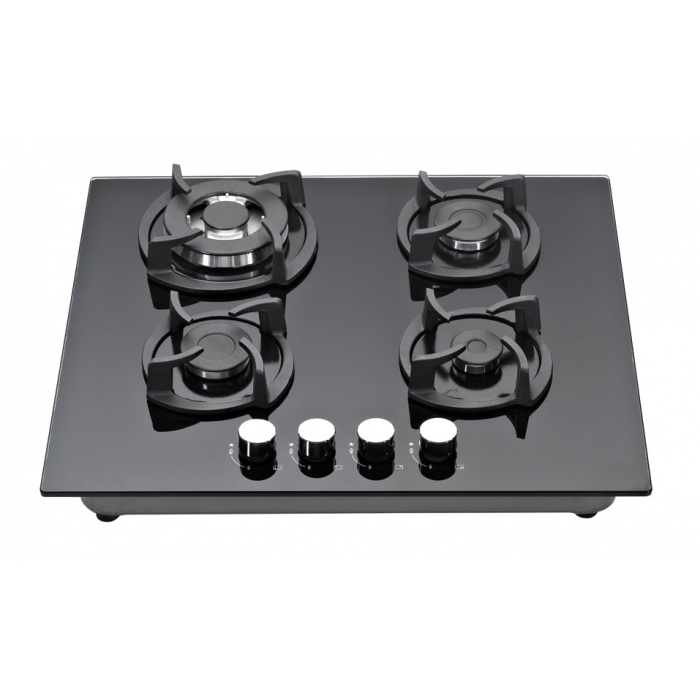 Варочная панель Wolser WL-6406 GT IC Поверхность стекло 4 конфорки газовые грили на каждого чугуна Горелка газовая управления Электрические зажигания горелки турбо Размер: 580x500x80mm.