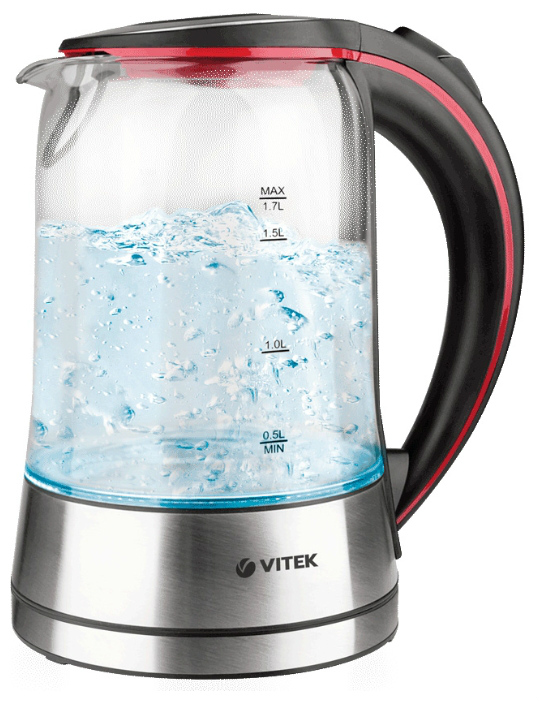 Электрочайник VITEK VT-7009 Тип обычный Мощность 2200 Вт Объем 1,7 л Тип нагревательного элемента скрытый (диск) Индикатор уровня воды есть Материал корпуса стекло Защита от перегрева есть Функции автоотключение при закипании Подогрев до заданной температуры нет Отсек для кабеля есть Особенности Подсветка Материал фильтра: нейлон Аксессуары фильтр Цвет нерж. сталь/черный/красный Страна производитель: Китай