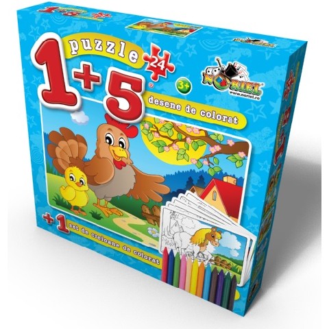 PUZZLE COLOREAZA-MA 24 PCS 3 Noriel Пазлы Раскрась меня "Курочка" Изображения позитивны и жизнерадостны! Пазл идеально подходит для самых маленьких, так как это позволяет им собирать пазлы и раскрашивать изображения по своему желанию, включая все свое воображение. Комплект содержит: 1 пазл с 24 деталями, пять красочных табличек и набор цветных карандашей. Рекомендумый возраст: 3 года +