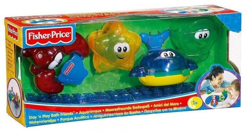 Mattel Fisher Price jucarie pentru baie Для весёлого купания в ванной для малышей от 1-го года. Панель с игровыми персонажами прикрепляется к ванне (кафелю) на присосках. Обаятельные персонажи составят компанию малышу во время купания в ванной. В комплекте: - мягкая двусторонняя игровая панель (36х10), - морская звезда, - китенок, - краб, - формочка. Ребенок набирает в формочку воду и затем выливает ее на игрушки и наблюдает за результатом: - корзиночка краба наполняется водой, она наклоняется и вода выливается, - внутри звезды - вращающаяся мельничка, - вода из китенка выливается быстрее или медленнее в зависимости от поворачиваемого рычажка. Размер игрушки: 36х10х10см