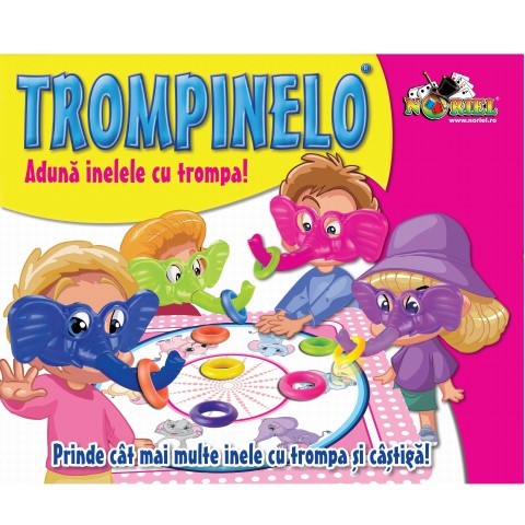 Trompinelo Noriel Настольная игра "Trompinelo" "Trompinelo" это игра для 2-4 игроков, в которой каждый из них должен продемонстрировать навыки, собирая кольца на игровом поле хоботок! Поймайте как можно больше колец! Cодержание: - 4 маски слона, разных цветов - 4 хобота - 4 ремня - 12 колец - 1 настольная игра Рекомендуемый возраст: от 3 лет