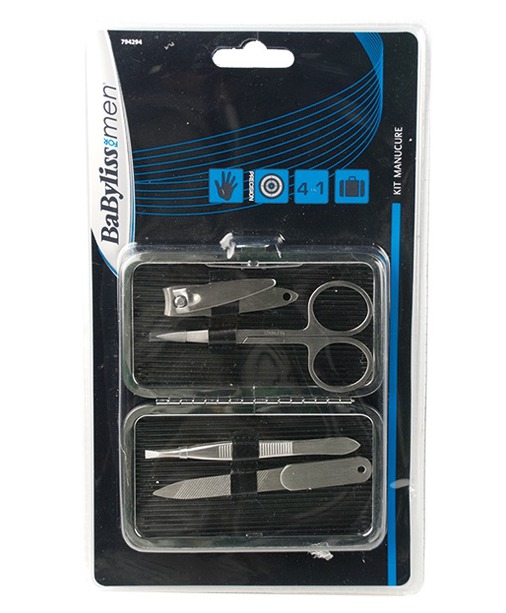 МАНИКЮРНЫЙ НАБОР для мужчин NEW Babyliss 794294 Маникюр от BaByliss. Этот компактный набор маникюр поставляется в небольшой коробке. Она состоит из пары ножниц, кусачек в карманном формате, файл и пинцетом.