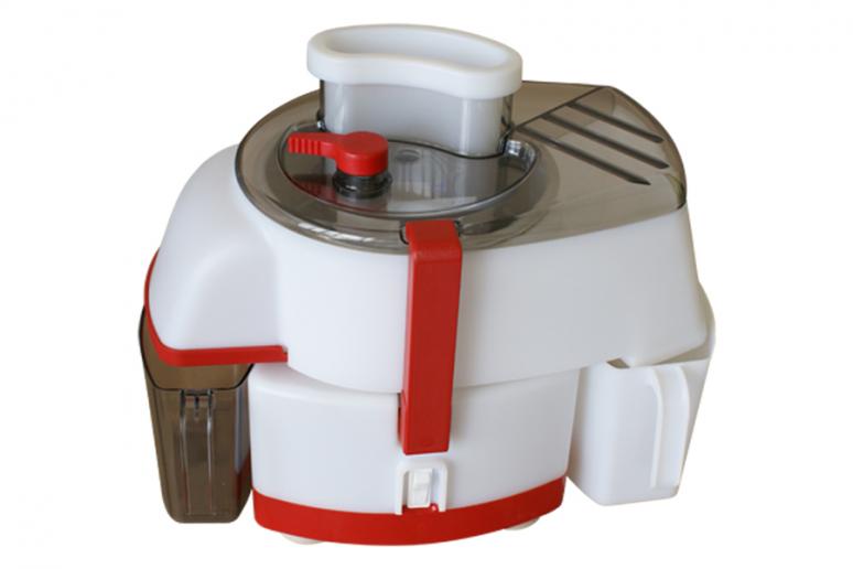 Электросоковыжималка СВПП-301 повышенной производительности Электросоковыжималка БелОМО выгодно отличается производительностью выжимания сока – 830 грамм сока в минуту, возможностью переработки 50 кг продуктов за один час, что позволяет применять ее при сезонной заготовке сока, когда имеется большое количество фруктов и овощей. Электросоковыжималка СВПП прекрасно подходит для большой семьи, все обитатели которой любят свежий сок. Верхняя крышка электросоковыжималки сделана из прозрачного пластика для возможности визуального контроля над процессом выжимания сока. Цилиндрическая форма барабана и принудительный ручной сброс жмыха обеспечивают лучшее сокоотделение. В комплект входят емкости для сока и жмыха. Все рабочие детали легко снимаются и моются. Использование толкателей и емкостей для сока и жмыха обеспечивает удобство и безопасность эксплуатации электросоковыжималки. Длинный шнур позволяет установить прибор в любом удобном месте на кухне. Производительность выжимание сока , г/мин, не менее 830 Чистота сока, % , не менее 92 Номинальная потребляемая мощность, Вт 250 Номинальное напряжение электропитания, В 220 Расход электроэнергии, кВт/ч 0,25 Длина гибкого соединительного шнура с вилкой, м 1,5 Габаритные размеры, мм 391x252x302 Масса, кг 6 Рекомендации по эксплуатации электросоковыжималки: - загрузку продуктов производить равномерно, небольшими порциями и только в работающую электросоковыжималку; - проталкивать продукты в загрузочный бункер только толкателем; - нажимать на толкатель с небольшим усилием, не допуская затормаживания вращающихся частей; - не загружать в соковыжималку фрукты с неудаленными косточками; - не пользоваться механизмом выбрасывателя без загрузки продукта ; - для обеспечения надежной работы электросоковыжималки в течение срока службы рекомендуется после 0,5 ч работы делать перерыв на 5-10 мин. Электросоковыжималка является самой мощной среди всех электросоковыжималок
