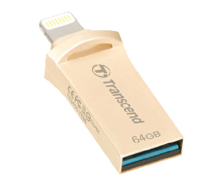 Флешка Transcend JetDrive Go 500, 64GB Lightning + USB3.1, Gold Plating, Metallic Case Стандарт USB: USB 3.1 Объём памяти, Гб 64