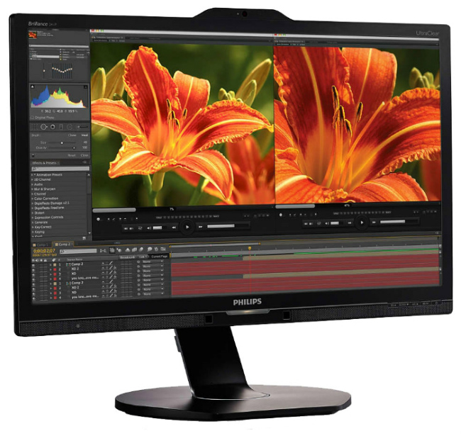 Philips 241P6VPJKEB Тип: ЖК-монитор, широкоформатный Диагональ: 23.8" Разрешение 3840x2160 (16:9) Тип матрицы экрана TFT AH-IPS Подсветка WLED Макс. частота обновления кадров 76 Гц Шаг точки по горизонтали 0.137 мм Шаг точки по вертикали 0.137 мм Яркость 300 кд/м2 Контрастность 1000:1 Динамическая контрастность 50000000:1 Время отклика 5 мс (g to g), 14 мс (on/off) Область обзора по горизонтали: 178°; по вертикали: 178° Максимальное количество цветов более 1 млрд. Частота обновления строк: 30-83 кГц; кадров: 56-76 Гц Входы DVI-D (HDCP), HDMI 2.0, DisplayPort, VGA (D-Sub), аудио стерео Поддержка MHL есть Выходы на наушники Интерфейсы USB Type A x3, USB Type B USB-концентратор есть, количество портов: 3 Версия USB USB 3.0 Мультимедиа стереоколонки (2x2 Вт), микрофон Функциональность меню на русском языке, калибровка цвета, датчик освещенности, датчик присутствия Блок питания внешний Потребляемая мощность при работе: 30 Вт, в режиме ожидания: 0.50 Вт, в спящем режиме: 0.50 Вт Встроенная веб-камера есть (2 Мп) Стандарты Plug&Play: DDC CI; энергосбережения: Energy Star 6.0 Регулировка по высоте есть Поворот на 90 градусов есть Настенное крепление есть, 100x100 мм Размеры, вес 531x422x256 мм, 5.85 кг