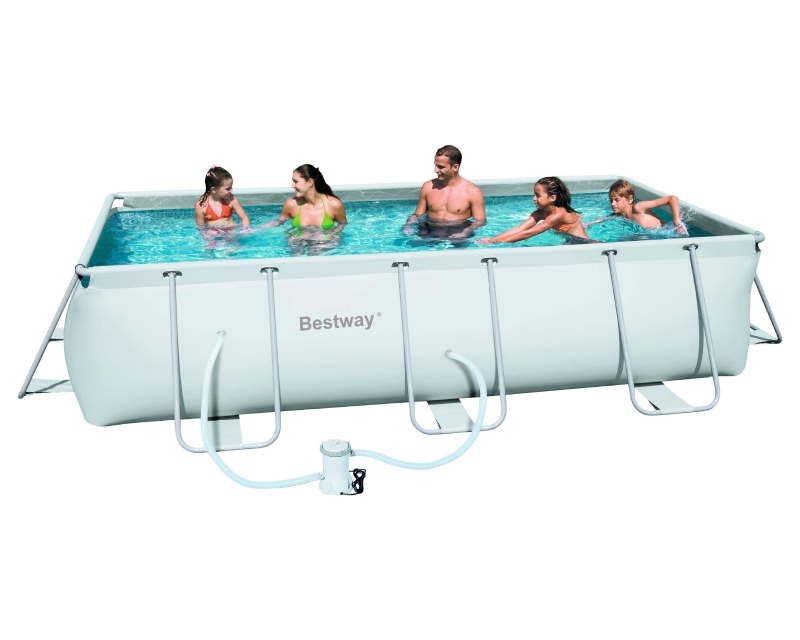 Каркасный бассейн 404х201х100 см Бассейн каркасный Bestway 56251 - замечательный прямоугольный бассейн для всеё семьи. Каркасный бассейн состоит из металлического каркаса и мягкой чаши бассейна из армированого трехслойного ПВХ, которая надежно защищает его от протеканий и повреждений. В комплект входит: Картриджный фильтующий насос Bestway 58148 производительностью 2000 л/ч. Руководство по установке на DVD.
