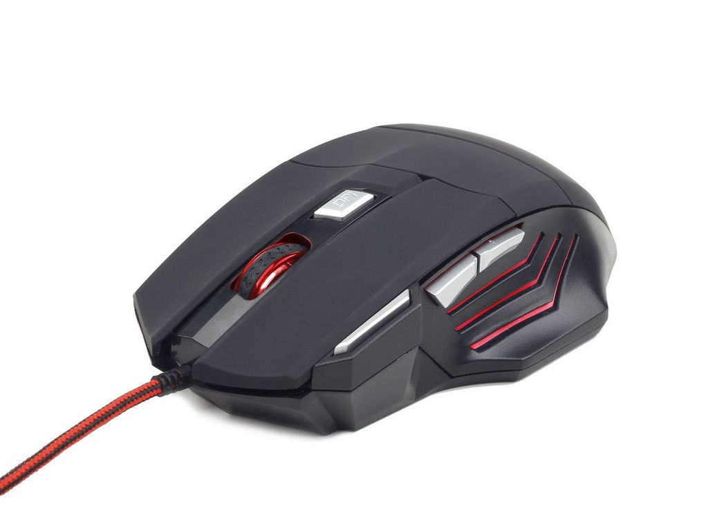 Мышь Gembird MUSG-02 Black USB проводная мышь для правой руки интерфейс USB для настольного компьютера светодиодная, 7 клавиш разрешение сенсора мыши 3600 dpi размеры (ШxВxД): 85x39x128 мм вес: 121 г