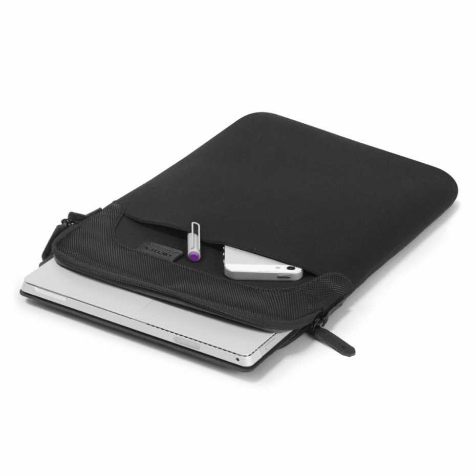 Dicota D31097 Ultra Skin PRO 13" - 13.3" (Black), Professional neoprene case for the most rigorous demands, (husa laptop/чехол для ноутбука) Профессиональный кейс из неопрена. Выбор материала делает Ультра PRO Skin долговечным. Корпус выполнен из прочного неопрена в сочетании с нейлоновыми и натуральной кожи деталей. Мягкая синтетическая подкладка шерсти на внутренней стороне защищает ваш ноутбук от царапин. Гибкий отсек для принадлежностей на передней панели обеспечивает место для хранения банка питания, кабель для зарядки, мобильный телефон и другие личные вещи. Защитный корпус оснащен двумя молниями. Это позволяет заряжать ваш ноутбук или ультрабук удобно, без ущерба для максимальной защиты. Производитель: Dicota Максимальный размер экрана: 13.3