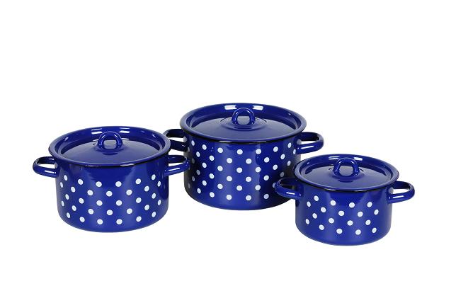 Набор кастрюль (1.5л/2,9л/3,9л) Белый горох Стальэмаль 1с33/1-10 Торговая марка СТАЛЬЭМАЛЬ Деколь Белый горох Вид Безободковая Форма цилиндр Артикул 1с33/1 Тип упаковки индивидуальная Размер транспортной тары 225*400*250 Цвет эмали синий / синий