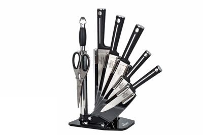 Краткие характеристики Bohmann BH-5075 Количество предметов 8 Материал лезвия нерж. сталь Материал рукоятки пластик/нерж.сталь Материал подставки акрил Ножницы кухонные есть Нож поварской 1 Нож хлебный 1 Нож универсальный 1 Нож для очистки 1 Нож для мяса 1 Мусат 1 Производитель Bohmann