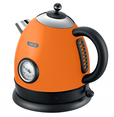 Электрочайник AKAI KM - 1077 O Электрический чайник . Цвет - оранжевый. Мощность 1850Вт. Корпус - нержавеющая сталь. Нагревательный элемент закрытого типа. Встроенный термометр. Блокировка включения без воды. Защита от перегрева. Автоотключение при закипании. Питание 220В. Краткие характеристики Akai KM-1077O Объём : 1.7 л Потребляемая мощность : 1850 Вт Терморегулятор : есть Тип нагревательного элемента : скрытый Вращение на 360° : есть Фильтр от накипи : есть Индикатор уровня воды : есть Индикация включения : есть Отключение при закипании : есть Отключение при отсутствии воды : есть Отсек для сетевого шнура : есть Цвет : оранжевый Материал корпуса : нержавеющая сталь Вес : 1.1 кг Производитель : Akai