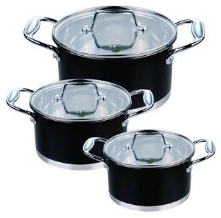Набор кастрюль Rainstahl RS-1063BK Количество предметов 6 Материал нерж. сталь Материал крышки нерж. сталь/стекло Кастрюли 3 Тип нагрева универсальный Производитель Rainstahl