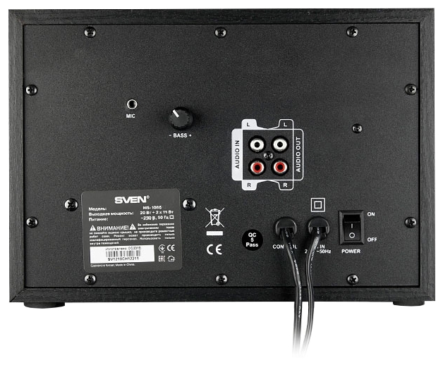 Колонки SVEN MS-1086 GOLD Black, remote control, 48w / 20w + 2x14w / 2.1- http://www.sven.fi/ru/catalog/multimedia_2.1/ms-1086.htm Тип: 2.1 Суммарная мощность: 48 Вт Материал корпуса фронтальных колонок/сателлитов: MDF Материал корпуса сабвуфера: MDF Диапазон воспроизводимых частот: 35-20000 Гц Частотный диапазон фронтальных колонок/сателлитов: 150-20000 Гц Частотный диапазон сабвуфера: 35-150 Гц Магнитное экранирование фронтальных колонок/сателлитов: есть Магнитное экранирование сабвуфера: есть Регулировка тембра: НЧ Пульт дистанционного управления: проводной Питание: от сети Линейный вход (стерео): есть, разъем RCA Разъем для наушников: есть Вход для микрофона: есть Количество полос фронтальных колонок: 2 Мощность фронтальных колонок: 14 Вт Мощность сабвуфера: 20 Вт Размеры динамиков фронтальных колонок: 1x25, 1x75 мм Размеры динамиков сабвуфера: 1x110 мм Размеры фронтальных колонок (ШxВxГ): 101x166x111 мм Размеры сабвуфера (ШxВxГ): 266x187x246 мм