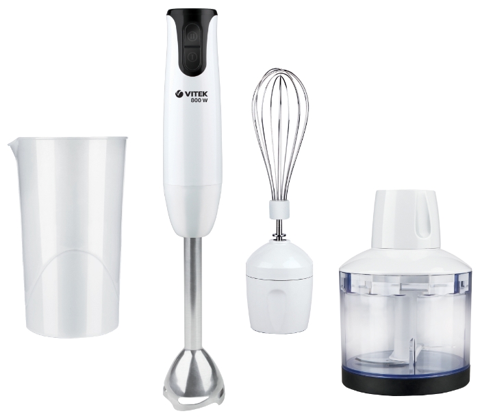 VITEK VT-3412 Компактный погружной блендер VT-3412 от компании Vitek мощностью 800 Вт оснащенный 2-мя скоростями работы станет незаменимым помощником в приготовлении вкусных и полезных блюд. Благодаря высокой мощности и острым лезвиям из нержавеющей стали вы буквально в считанные минуты обработаете продукты. Так, насадка-блендер позволит смешать ингредиенты для приготовления теста или соусов, насадка-венчик – взбить или смешать жидкие продукты, а измельчитель – быстро обработать овощи, фрукты, зелень или мясо. В стакане для смешивания с крышкой в комплекте вы легко приготовите вкуснейшие коктейли. Благодаря турбо-режиму обработка продуктов происходит на максимальной скорости. Мощность 800 Вт Емкость стакана 700 мл Емкость мини-измельчителя 500 мл Тип Погружной Колка льда Нет Комплектация Моторный блок Насадка-блендер Редуктор венчика Насадка-венчик Крышка-редуктор Нож-измельчитель Чаша чоппера Мерный стакан Инструкция Материал ножки блендера Металл Вес 1.2 кг Цвет Белый Мини-измельчитель Есть