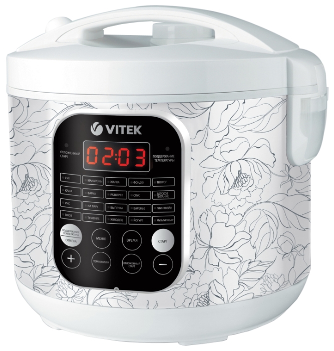 VITEK VT- 4270 White Мультиварка Vitek 4270 мощностью 900 Вт с сенсорным управлением. Одним касанием сенсорной панели Вам нужно задать необходимую программу, а кулинарный шедевр приготовит сама мультиварка! С функцией «Мультиповар» Вы реализуете любую кулинарную фантазию, самостоятельно выбрав время и температуру для приготовления блюда. Новое качество вкуса блюд с корейским керамическим покрытием , с которым Вы забудете о пригорании пищи! Оно обеспечит безопасность работы, а также сохранит вкус и качество продуктов во время приготовления. 3D нагрев обеспечит равномерное приготовление блюд без подгорания. Такой эффект позволяет равномерно распределять тепло во время приготовления благодаря нагреву внизу, по бокам и в крышке, избегать подгорания и сохранять в продуктах все полезные элементы. Ваше блюдо получится исключительно вкусным, качественно приготовленным и полезным! А 20 авторежимов сделают приготовление любимых блюд исключительно легким. Для приготовления каш, супов, мяса, рыбы, выпечки и многого другого нужно лишь загрузить необходимые ингредиенты. Все остальное мультиварка VITEK VT-4270 сделает сама! Объем чаши 5 л Мощность 900 Вт Управление электронное Дисплей есть Количество программ 20 Программы Суп, Каша, Рис, Плов, Макароны, Варка/На пару, Тушение, Жарка, Разогрев, Выпечка, Холодец, Фондю, Соус, Варенье, Йогурт, Творог, Детское, Глинтвейн, Мультиповар Таймер отсрочки есть Поддержание тепла есть Материал корпуса пластик Внутреннее покрытие чаши антипригарное Цвет белый Комплектация чаша, мерный стакан, плоская ложка, шнур питания, инструкция, гарантийный талон, крышка с клапаном выпуска пара Производитель Vitek