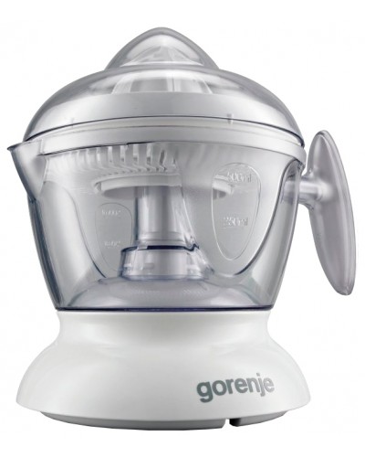 Соковыжималка GORENJE CJ 25 W Эта соковыжималка предназначена для получения сока из апельсинов, лимонов и других цитрусовых. Модель GORENJE CJ 25 W выполнена в современном дизайне, отличается компактными габаритами, простотой в эксплуатации и уходе. Корпус изготовлен из качественного пластика и металла, а для его устойчивого положения на поверхности стола предусмотрены прорезиненные ножки. Соковыжималка оборудована электродвигателем мощностью 25 Вт. Для максимально эффективного отжима в устройстве реализовано реверсивное вращение. Объем ёмкости для сока составляет Резервуар для сока: встроенный Система прямой подачи сока: нет Индикатор уровня сока: есть Комплектация количество конусных насадок: 1 Материал корпуса: пластик Импульсный режим: есть