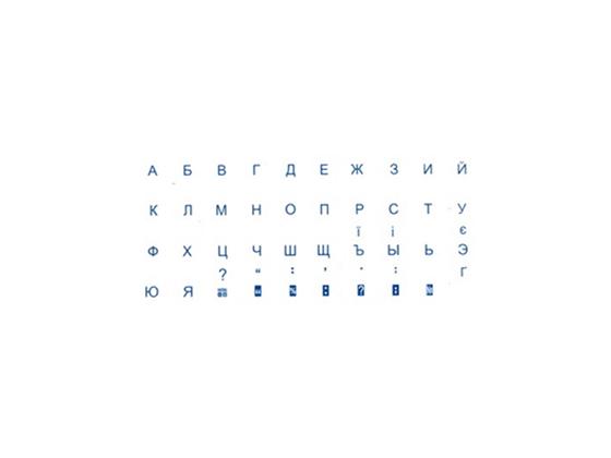 Наклейки на клавиатуру (Синие буквы на прозрачной пленке/ Рус/ Рум), 11мм х 13мм