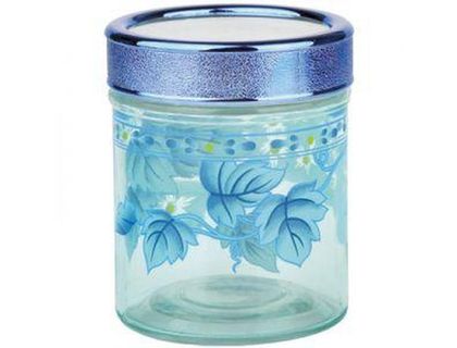 BOHMANN BHG 01 - 325 Емкость для хранения сыпучих и жидких продуктов из стекла с крышкой ( с голуб. декором). Объем 0,80 л. Размер: 10.3x12.5cm