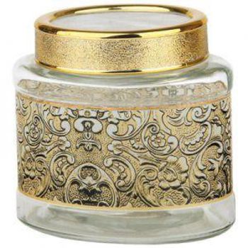 BOHMANN BHG 01 - 326 Емкость для хранения сыпучих и жидких продуктов из стекла с крышкой ( с зол. арнам). Объем 0,85 л. Размер: 13.5x10.5x12.5cm