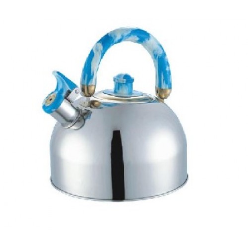 BOHMANN BHL - 641 Чайник «Bohmann» изготовлен из высококачественной коррозионностойкой стали с зеркальной полировкой. Материал, зарекомендовавший себя как идеально подходящий для изготовления кухонной посуды и аксессуаров. Прочность, надежность, стойкость к кислотам и привлекательный внешний вид основные свойства этого материала. Серия Lite в линейке посуды «Bohmann» это посуда из стали, легкая и экономичная. Подвижная ручка изготовлена из цветного бакелита. Носик чайника оснащен откидным свистком, звуковой сигнал которого подскажет, когда закипит вода. Чайник «Bohmann» — качественное исполнение и стильное решение для вашей кухни. Подходит для использования на газовых, стеклокерамических и электрических плитах. Также изделие можно мыть в посудомоечной машине. Диаметр (по верхнему краю): 8,5 см. Высота чайника (без учета ручки): 12,5 см. Высота чайника (с учетом ручки): 22 см. Диаметр основания: 22 см. Краткие характеристики Bohmann BHL-641 Blue Объем 4.5 л Материал корпуса нержавеющая сталь Полировка зеркальная Материал ручки бакелит Свисток есть Производитель Bohmann