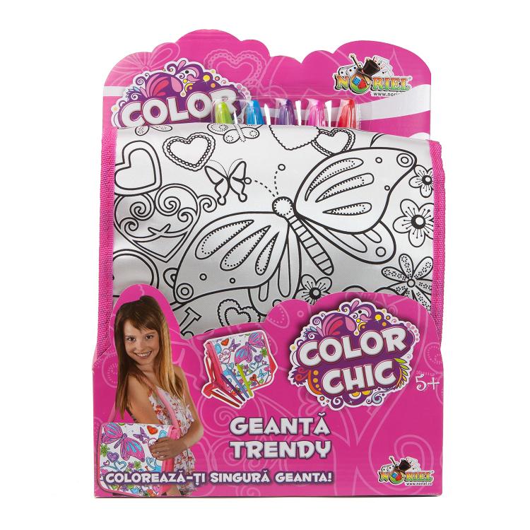 Color Chic - Geanta Trendy Ne place sa fim originali si sa purtam accesorii unice, care sa ne defineasca personalitatea. Tocmai de aceea Color Chic le ofera fetitelor geanta trendy pe care o pot colora asa cum isi imagineaza ele, cu markerele incluse in set. Tu cum iti doresti sa arate geanta ta trendy Inchide ochii, imagineaza-ti, deschide ochii si apuca-te de colorat. Mai tarziu, laudele nu vor conteni la adresa ta si a gentii tale cu adevarat trendy. Alege modelul care ti se potriveste: Hipster Mall Urban Cool Fiecare geanta are specificul si personalitatea ei si se muleaza perfect pe stilul personal al fiecareia dintre fetitele care vor sa fie originale si creative. Pentru plimbarile cu stil, avem Color Chic - Geanta Trendy. De restul se ocupa fetitele cu imaginatie si personalitate. Dimensiune produs: 24 x 24 cm Recomandare varsta: 5 ani+