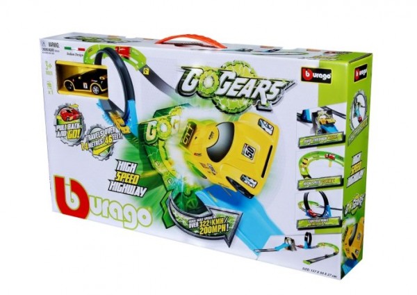 RO: 1:55 GO GEAR HIGH SPEED_BBURAGOSetul Go Gear este dedicat masinutelor din seria Go Gear, masinute cu resort, care pot atinge viteze de pana la 320 km/h, conform scarii 1:55. Setul include 1 masinuta Go Gear.