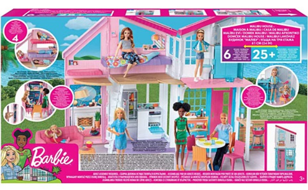 Mattel Casa de vis Barbie "Malibu" Casu?a din Malibu - visul fiecarei feti?e!Casa consta din 3 par?i,partea din mijloc ?i doua par?i laterale! RU: Огромный двухэтажный дом с шестью комнатами и с мансардой на крыше.На первом этаже дома расположена: уютная гостиная, кухня оснащена нужн