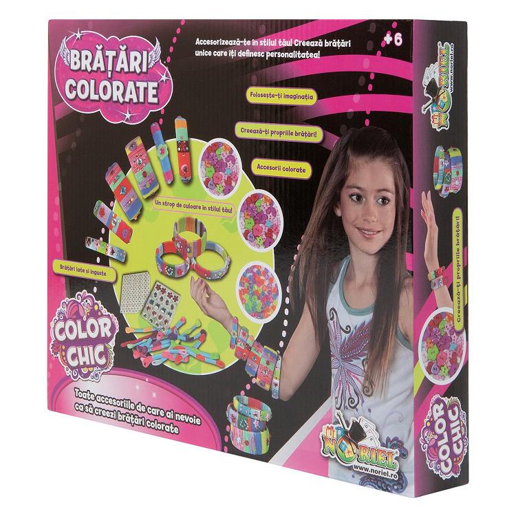 Color Chic - Bratari Colorate Accesorizeaza-te in stilul tau! Creeaza bratari unice care iti definesc personalitatea ! Alege una dintre bratarile din plastic incluse si infasoara pe ea fire colorate,pana o acoperi complet. Apoi, cand bratara este gata, aplica strasuri, nasturasi sau sclipici pentru o nota si mai personala. Setul Color Chic - Bratari Colorate dezvolta creativitatea si imaginatia fetitelor. Mai mult decat atat, le invata pe cele mici conceptul de rabdare. Cine nu si-ar dori sa poarte accesorii frumoase, facute chiar de ei? Cine stie, poate ca printre fetite se afla viitori designeri de bijuterii. Iar Bratarile Colorate de la Color Chic reprezinta doar un pas spre viitor pentru ele. Setul contine: fire colorate bratari de plastic margelute nasturi de plastic strasuri tub cu sclipici tub cu lipici Recomandare varsta: 6 ani+.