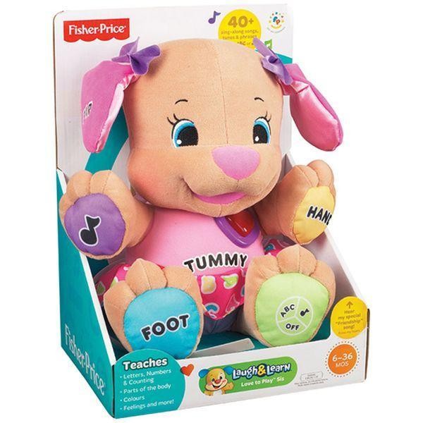 Mattel F.P. Catelus inteligent "fetita" (rom.) Интерактивная игрушка Fisher Price Ученый щенок "Девочка" po Девочка Fisher Price - это очаровательная мягкая развивающая игрушка для девочек. B игровой форме обучает названиям частей тела и познакомит с основными цветами. Эта забавная девочка-щенок не только говорит, но и поет песенки. Вместе с ней кроха познакомится с буквами и цветами, узнает как называются части тела, и просто замечательно проведет время! Милая и приятная наощупь, она станет настоящей подружкой девочке. В наборе демонстрационные 3 батарейки АА. Рекомендуемый возраст: 6 - 36 месяцев