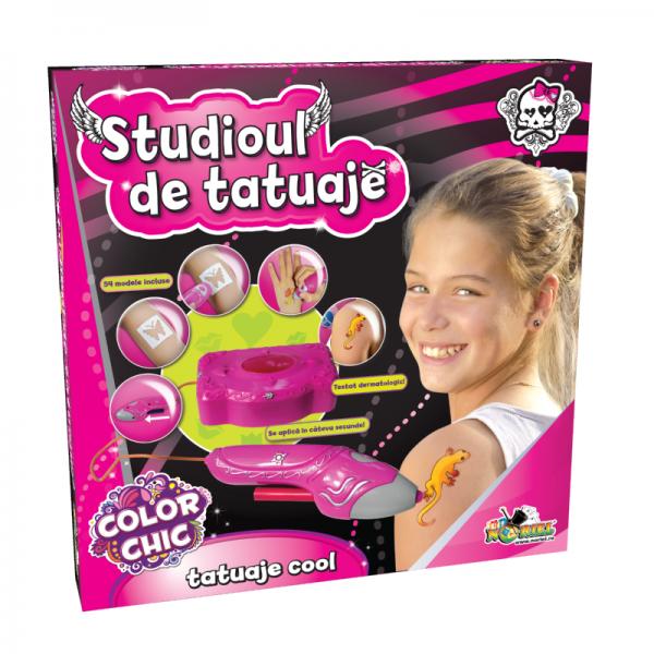 NORIEL Eroare_Tatoo machine RO: Studioul de TatuajeVrei sa fii cool? Nimic mai simplu! Studioul de Tatuaje e setul care iti permite sa-ti faci cele mai interesante tatuaje. Nu trebuie decat sa alegi unul dintre cele 54 de modele, sa selectezi o culoare si sa-ti faci tatuajul cu apli