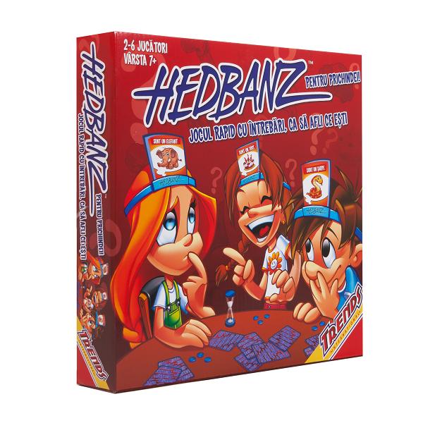 NORIEL Hedbanz Kids Joc HEDBANZ pentru prichindei Jocul rapid cu intrebari ca sa afli cine esti! Sunt un pui? Sau o bicicleta? Participa la jocul caraghios in care nu stii niciodata cine sau ce esti... pana cand nu incepi sa pui intrebari! Incearca sa-ti dai seama daca esti un animal, ceva de mancare sau un obiect casnic.Toata lumea stie in afara de tine! Continutul setului: 74 de carti 24 de jetoane de scor 6 bentite Cronometru Regulament