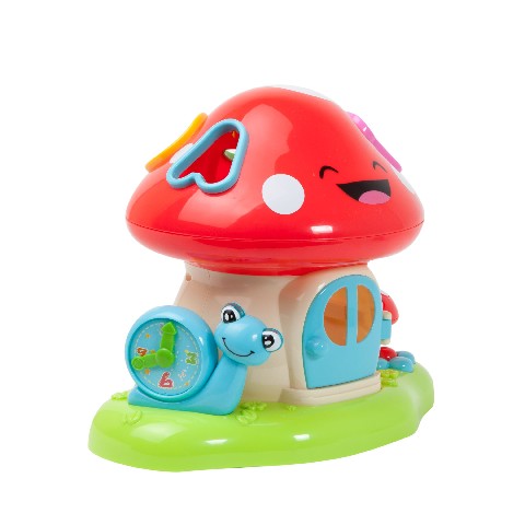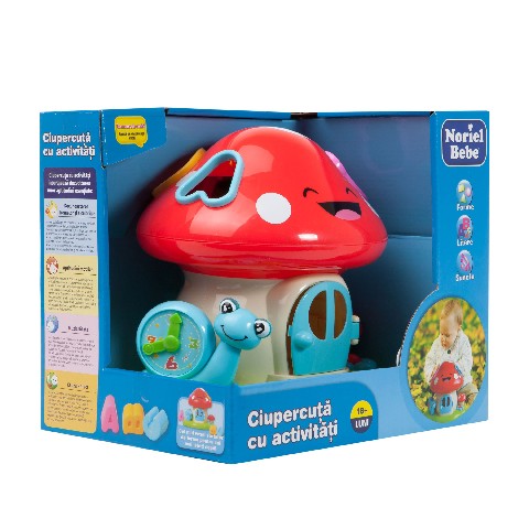 NORIEL BO Mushroom House Building Blocks Noriel Интерактивная игрушка "Грибочек" Множество мероприятий для любопытных детей! Буквы кидают в крышу и извлекают из двери, улитка следит за временем, считает цветки поет милые песни, беспрестанно хихикая! Игрушка способствует развитию основных навыков: Распознавание образов и цветов, сортирование форм. Формы представляют собой точку (А, В, С и D), которые входят в окно, соответствующее ребенку. При вводе правильной буквы, ребенок будет вознагражден огнями и звуками. Игрушка требует навыков и зрительно-моторной координации: ребенок должен нажимать на кнопки, повернуть стрелки часов червем, выбрать формы и поместить их в окно в оптимальном положении, затем открыть дверцу и вынуть формы, чтобы использовать их снова. Тип батареи: 3 x AA 1.5V (включены) Рекомендуемый возраст: 18 месяцев +