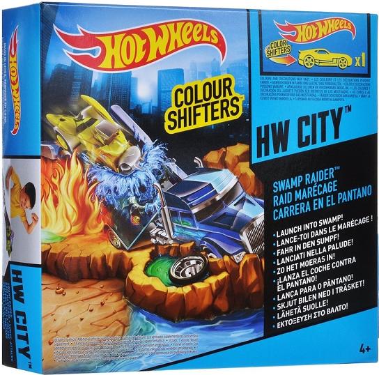 Mattel Set de joaca "Exlozie de culoare"seria "Color Change" HW ast Aceste 2 seturi de joaca cu apa au culori schimbatoare! Lanseaza masina in apa pentru a-i schimba culoarea si activeaza flacarile din setul Swamp Rider sau plonjeaza prin trapa ascunsa in tancul cu apa din setul Splash & Dash. Fiecare set vine cu o masina ce are culori schimbatoare. Puteti atasa oricare din seturi la pista voastra Hot Wheels pentru o exitinde!