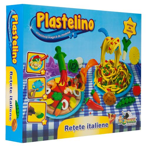 Plastelino - Retete Italiene Bine ai venit in lumea lui Plastelino! Acesta este locul magic in care poti sa-ti imaginezi, sa creezi, sa construiesti la nesfarsit! Aventura imaginatiei tale incepe acum! Seturile tematice Plastelino® contin plastilina de calitate, cu aroma de vanilie, si accesorii care ii permit copilului sa modeleze plastilina in cele mai trasnite si mai creative forme! Daca iti place sa iti pui imaginatia la lucru, in mod sigur Plastelino va fi preferatul tau, pentru ca are o multime de instrumente si plastilina cu aroma de vanilie, care iti permit sa creezi orice forma! Toate visele tale pot deveni realitate! Tot ce ai de facut este sa-ti imaginezi si apoi sa modelezi, folosind seturile Plastelino®. E simplu! Pune plastilina pe forma, preseaza si decupeaza. Produsul este in conformitate cu standardele Uniunii Europene. Nu contine substante toxice. Recomandare varsta: 3 ani + Avertisment: Nerecomandat copiilor cu varsta sub 3 ani. Contine piese mici care pot fi inghitite. Nu lasati pungi din plastic la indemana copiilor mici - pericol de asfixiere. Atentie: Contine amidon, care poate provoca reactii alergice. Produsul nu este destinat ingerarii. Observatii: Pentru ca plastilina sa-si pastreze consistenta, puneti-o in recipientul sau dupa utilizare. Depozitati plastilina intr-un loc racoros. Nu udati plastilina. Daca este necesar, adaugati cate o picatura de apa pentru a reda plastilinei elasticitatea. Culorile si detaliile de design pot varia. Indepartati toate elementele de ambalaj inainte de a oferi jucaria copilului. Va rugam sa pastrati ambalajul si toate informatiile in legatura cu acest produs pentru referinte ulterioare.