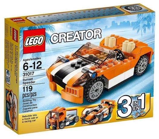 LEGO Sunset Speedor Технические характеристики Тип: классический Двигатель: нет Материал: пластик Пол: для мальчиков Рекомендуемый возраст: от 6 до 12 лет Развивает: логику и мышление, моторику и ловкость Контейнер для хранения: нет Деталей: 119 шт.