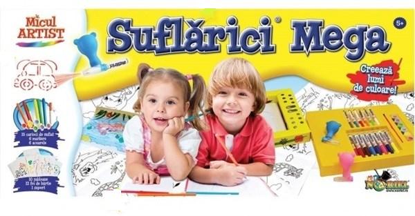 NORIEL Blo Pen Mega Set Creeaza dintr-o suflare! Arta devine distractiva si neconventionala. Uita de creioane si carioci si picteaza intr-un nor de culoare. Nu trebuie decat sa sufli prin tubul special si culoarea umple formele sablonului. Creeaza si distreaza-te fara limite. Bonus! Un suport pentru culorile tale.