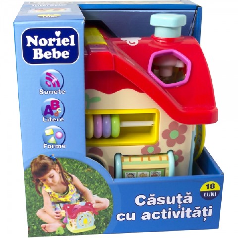 NORIEL Funny Inteligence House Bine ai venit in casu?a in care se intampla lucruri minunate! Casu?a cu activita?i are o mul?ime de func?ii ?i caracteristici (sortator de forme ?i litere, roti?e ac?ionate manual, u?i?a care se incuie ?i se descuie etc.) care antreneaza mintea iscoditoare a micu?ului ?i ii ofera distrac?ie inegalabila! Casu?a cu activita?i incurajeaza dezvoltarea unor aptitudini esen?iale: Recunoa?terea formelor ?i a culorilor Casu?a este un sortator de forme. Introducand literele ?i formele incluse in spa?iile corespunzatoare, copilul va inva?a sa faca asocieri intre forme de acela?i tip ?i culori. Acest lucru ajuta la dezvoltarea sim?ului de orientare ?i a aten?iei. Aptitudini motrice Pentru a se bucura de toate func?iile jucariei, copilul trebuie sa efectueze mi?cari simple, dar ?i complexe (sa roteasca cilindrul pentru a vedea imagini incantatoare, sa introduca forme in spa?iile sortatorului, sa invarta roti?ele angrenajului etc.).