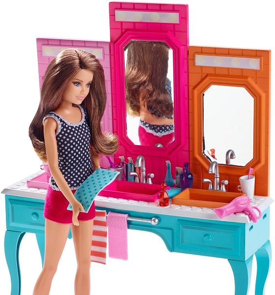 Descriere: Acest set permite o multitudine de jocuri pentru fetitele cu imaginatie. Prin combinarea tuturor seturilor din colectie, ele vor avea parte de o casa perfect accesorizata, in care fiecare detaliu conteaza. Noutatea acestui set de mobilier consta in faptul ca fiecare accesoriu poate fi pozitionat in locul sau specific. Setul include o papusa si piesele de mobilier.