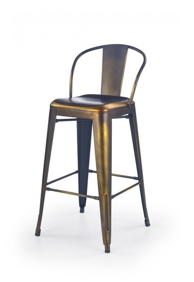 Halmar H-53 (yellow cooper) цельнометаллический стул для барной стойки Краткие характеристики Halmar H-53 Yellow Cooper Тип : со спинкой Количество ножек стула : 4 Каркас : сталь Цвет каркаса : медь желтая Сиденье : сталь Цвет обивки : медь желтая Размеры сиденья : 490x510 мм Минимальная высота : 750 мм Максимальная высота : 1050 мм Вес : 7.1 кг Производитель : Halmar