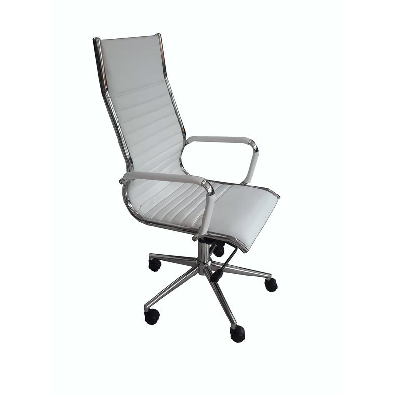 AMF ENZO white Ультрамодное офисное кресло с элегантным хромированным каркасом и крестовиной. Съемные кожаные чехлы на подлокотниках. Механизм качания. Краткие характеристики AMF Enzo Chrome White Тип : кресло для руководителя Основание : крестовина с роликами Механизм качания : есть Подлокотники : есть Регулировка высоты : есть Материал обивки : искусственная кожа Цвет : белый Гарантия : 12 мес. Производитель : AMF