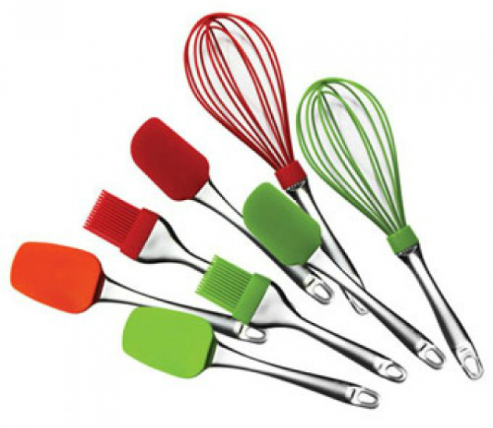 Set p-u bucatarie de silicon Mr-1590 4-х предметный кухонный набор Maestro MR 1590 Материал: силикон Удобство в использовании Возможные цвета: оранжевый, красный, зеленый Состав кухонного набора Maestro MR 1590: силиконовая лопатка, силиконовая кисточка, силиконовый венчик, силиконовая ложка