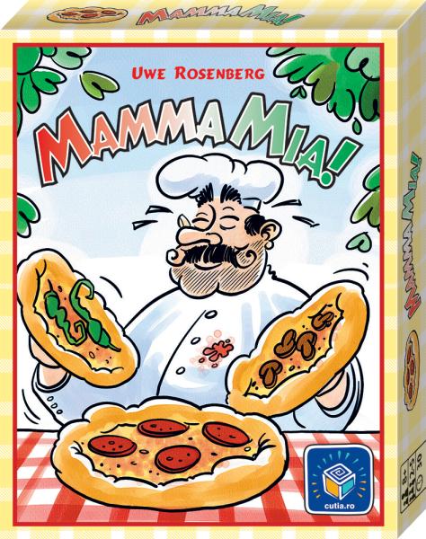 MAMMA MIA! Настольная, карточная игрa "Mamma Mia!" Игроки превращаются в реальных экспертов пиццы, они получают заказы и стараются выполнить их быстро с использованием всех ингредиентов из запаса, чтобы сделать лучшую пиццу. Эти ингредиенты собирают вместе и все ставят в духовку. После того, как все ингредиенты были использованы, вытащите все из духовки, чтобы проверить готова ли пицца к подаче на стол. Кто после трех раундов приготовит больше пиццы, тот будет назначен мастером пиццы! Один грамм теста, посыпанные чайной ложкой удачи и логического мышления обеспечит вам желанный титул "Mamma Mia!" Это простая карточная игра, но захватывающая, в которую могут играть не только два человека, но и больше. Количество игроков: 2 - 5 Рекомендуемый возраст: 8 лет +