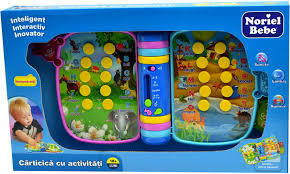 Noriel Kids - Carticica cu activitati Jucarie bebelusi Noriel Bebe - Carticica cu activitati Pentru ca stim cat de importanti sunt primii ani in dezvoltarea copilului si cat de necesara este joaca, la Noriel am proiectat jucarii inovatoare, cu un design atragator, care stimuleaza observatia, actiunea si invatarea. Pas cu pas, bebelusii vor ajunge sa cunoasca elementele de limbaj, formele, culorile, cifrele, alfabetul si multe alte cunostinte despre mediul care ii inconjoara. In plus vor avea ore intregi de distractie si veselie in preajma jucariilor Noriel. Noriel Bebe - Carticica cu activitati este cadoul nostru pentru micutul tau. Am pregatit pentru micul invatacel o carticica speciala. Paginile ei sunt pline cu ilustratii simpatice, cu litere, dar si cu activitati distractive. Selecteaza o activitate, apasa butoanele si asculta litere, cuvinte si forme, invata sa desparti in silabe, verifica-ti cunostintele si multe altele. Functii si caracteristici: 8 pagini din care 4 interactive functii sonore pentru litere, silabe, cuvinte cifre, culori, exercitii lumini buton de oprire si setare volum difuzor Noriel Bebe - Carticica cu activitati incurajeaza dezvoltarea unor aptitudini esentiale: Abilitati lingvistice Recunoasterea formelor si a culorilor Stimularea simturilor Jucaria functioneaza cu 2 baterii tip AA de 1.5V (incluse). Bateriile incluse sunt destinate exclusiv demonstratiei in magazin. Atunci cand instalati baterii in orice produs, asigurati-va ca acesta este oprit. Recomandare varsta: 18 luni+