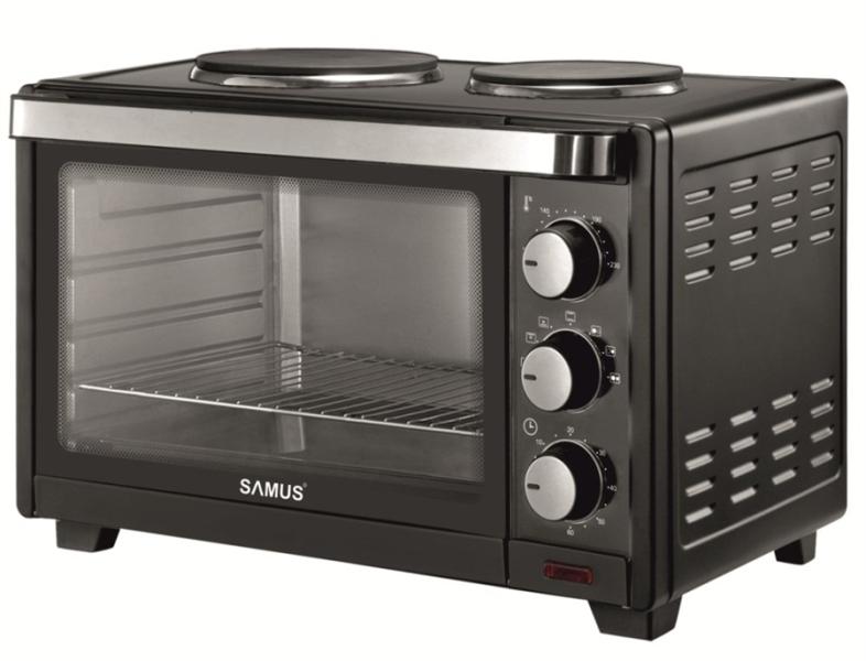 CUPTOR ELECTRIC SAMUS CS-45BPC Мощность духовки 1600 Вт Объем духовки 45 л Термостат 100-230 °C Гриль (верхний тэн) есть Конвекция есть Конфорки есть Мощность конфорок 1000, 600 Вт Таймер 60 мин. Размеры (ВхШхГ) 367х560x417 мм Цвет черный Вес 10.27 кг Комплектация противень, решетка Производитель Samus