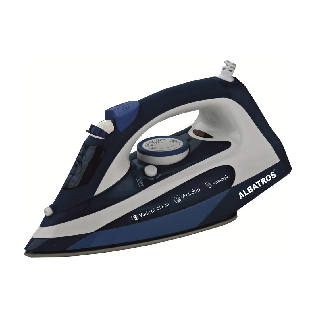 FIER DE CALCAT ALBATROS SAPPHIRE Мощность 2400 Вт Подошва керамическая Постоянная подача пара 75 г/мин Паровой удар 105 г/мин Вертикальный пар есть Распылитель воды есть Функция "Капля-стоп" есть Емкость резервуара для воды 500 мл Функция самоочистки есть Защита от накипи есть Длина шнура питания 1.91 м Цвет белый, синий Производитель Albatros